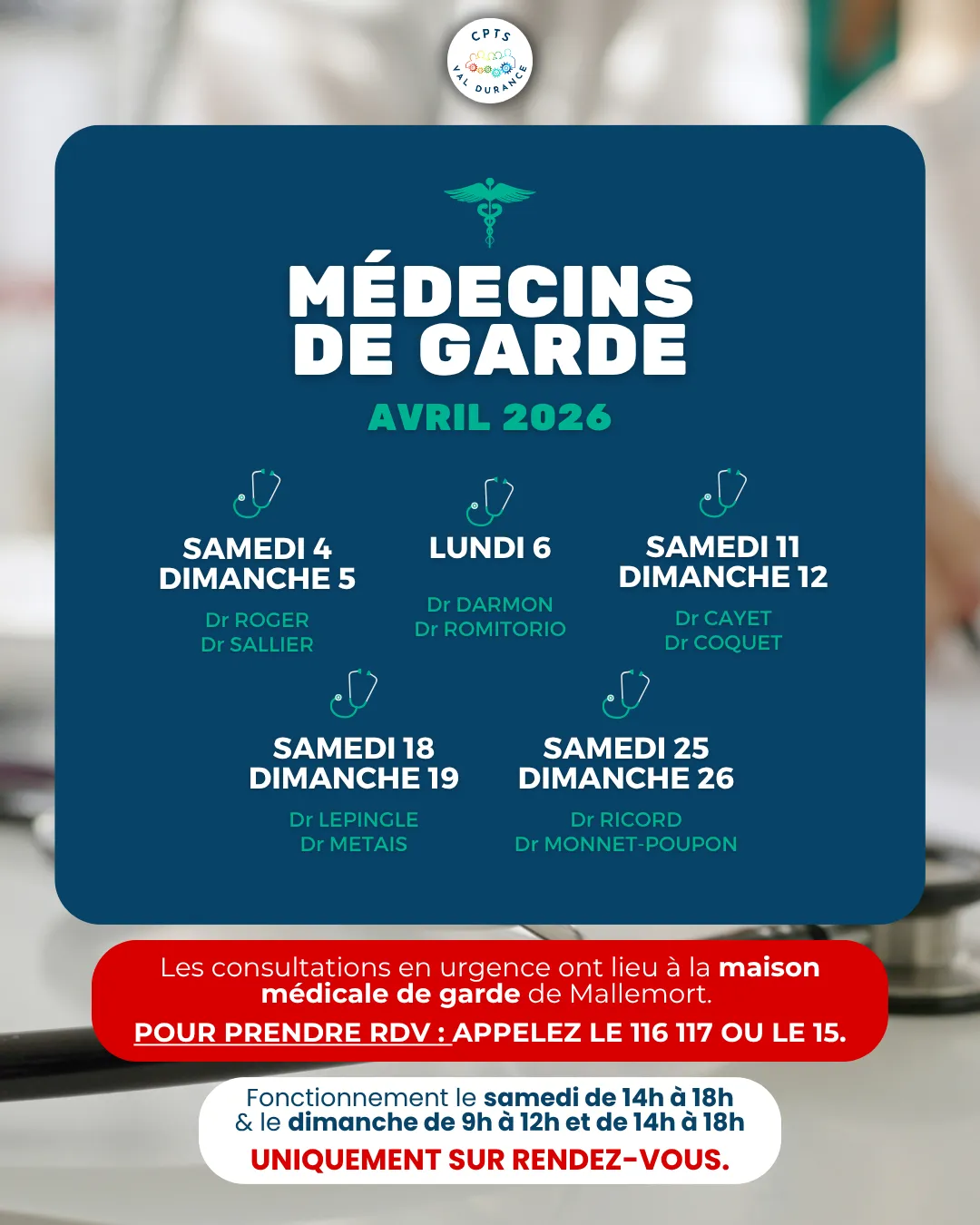 Si vous avez besoin d’un rendez-vous urgent le week-end et que votre rendez-vous ne peut pas attendre le début de semaine pour consulter votre médecin traitant, un médecin est d’astreinte au sein de votre secteur. Pour le connaitre, veuillez composer le 15 qui vous mettra en relation avec lui.