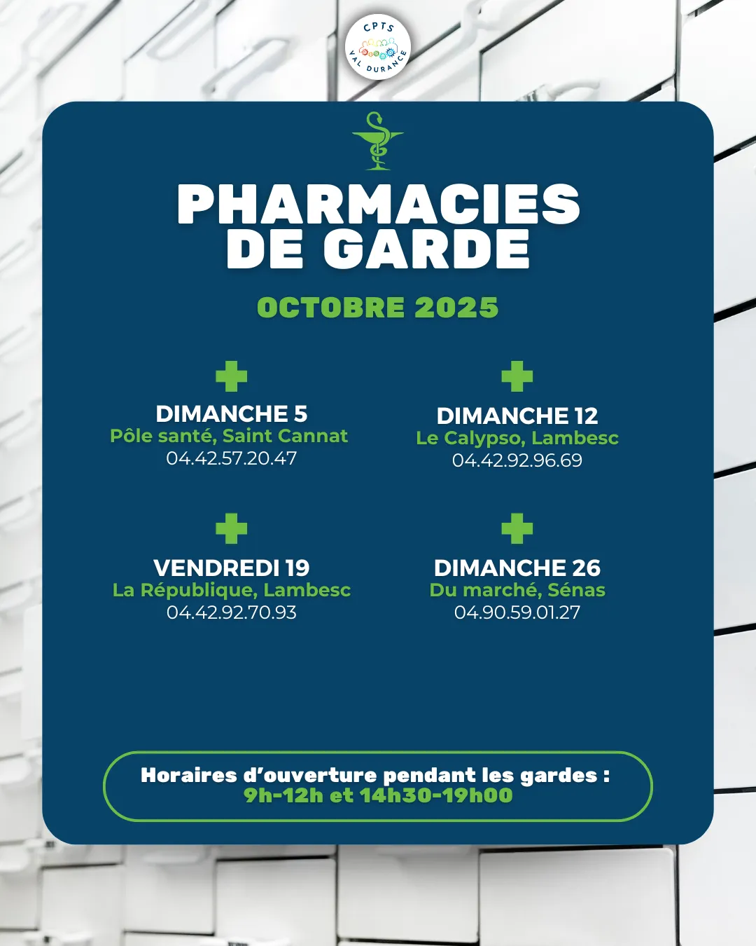 Les Dr PIERRES et AUTHIER sont de garde sur le secteur de Sénas, Lamanon, Eyguiéres, Eygaliéres, Orgon, Mallemort, Alleins, Vernégues, La Roque d'Anthéron, Charleval, Mérindol et Puget.